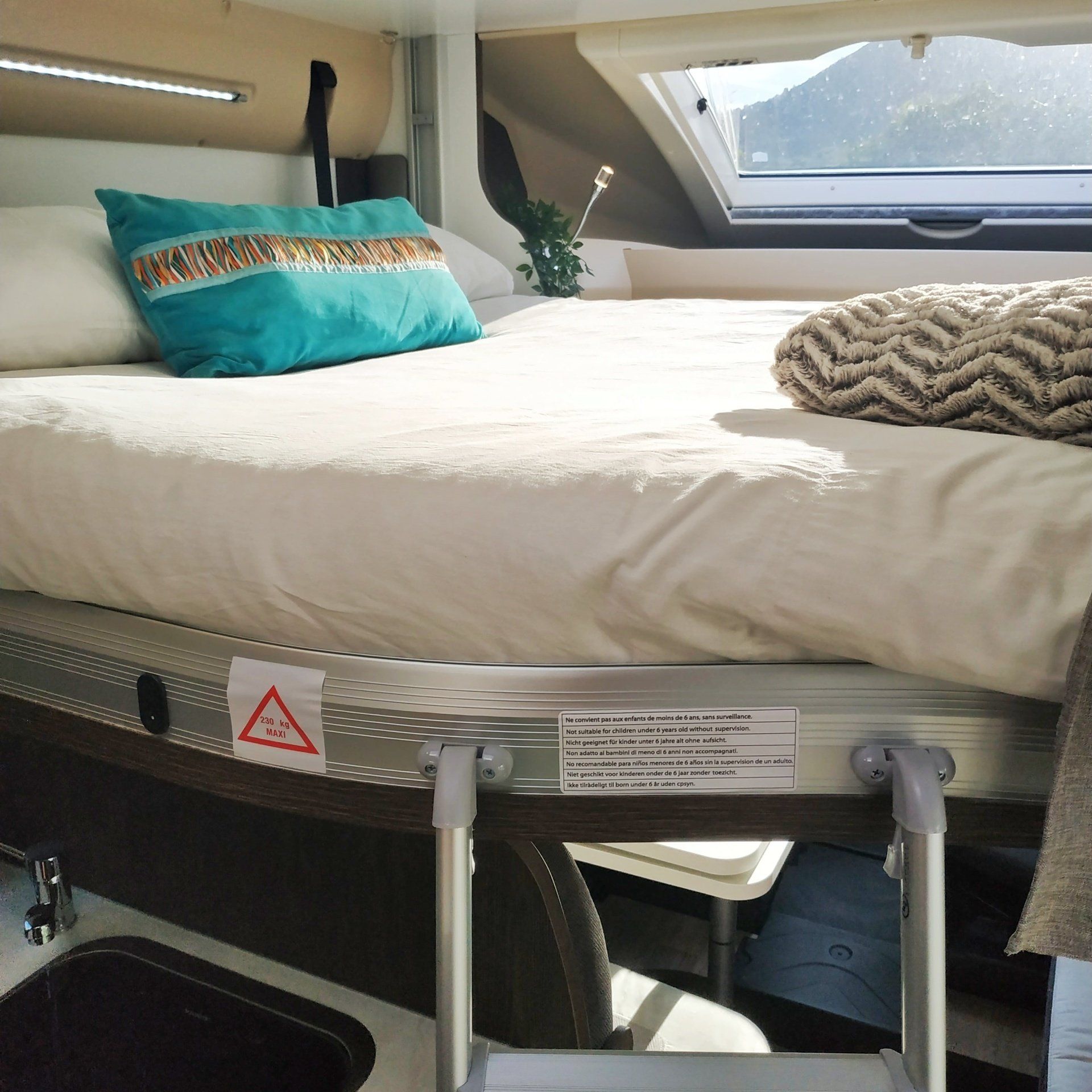 It is a profiled and spacious motorhome, with a very spacious garage for bicycles, luggage or whatever you need to take on your trip.