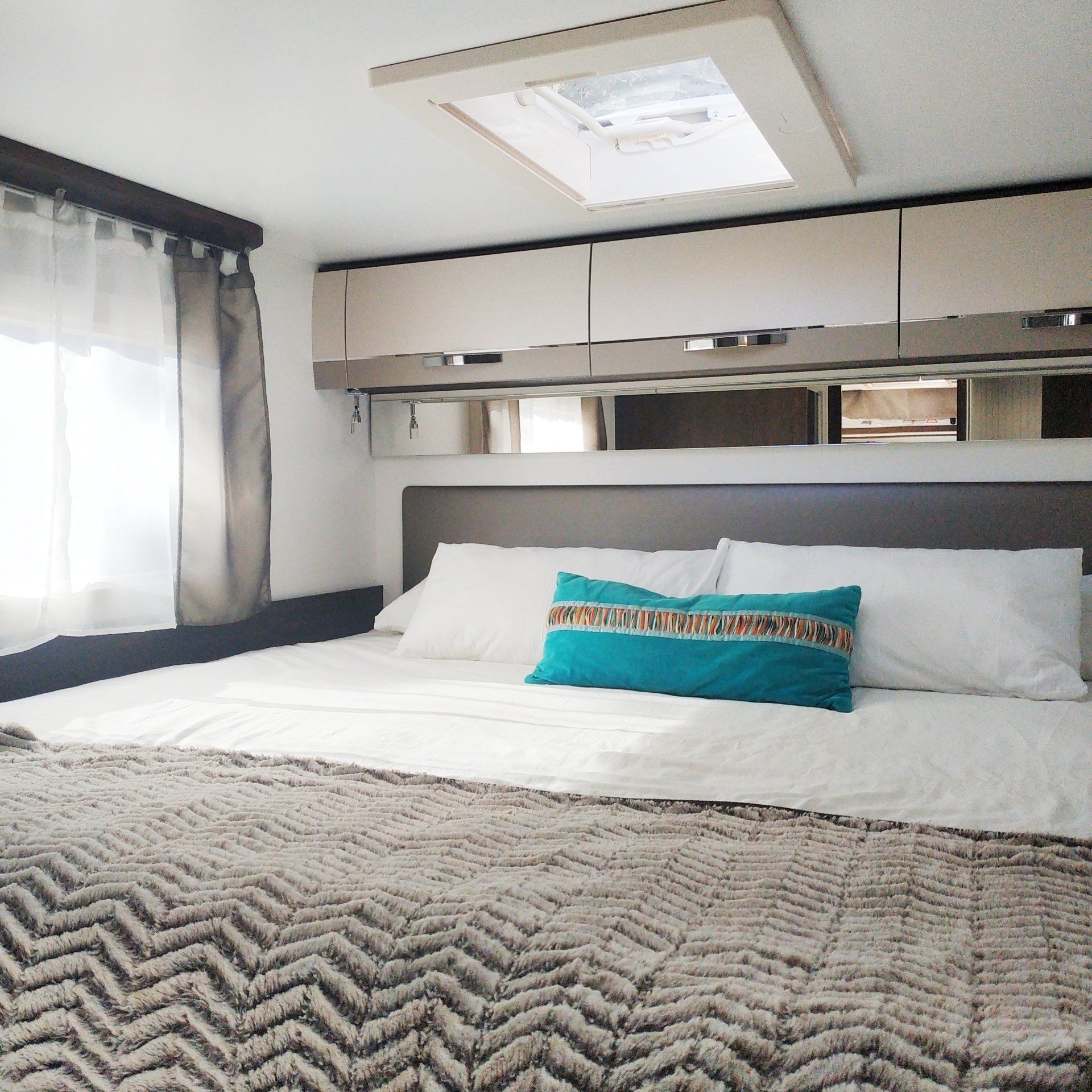 Le camping-car à lits jumeaux de A HAPPY VAN. Il accueille jusqu'à 5 adultes, à la fois pour voyager et dormir. Il s'agit d'un camping-car profilé et spacieux, avec un garage très spacieux pour les vélos, les bagages ou tout ce dont vous avez besoin pour votre voyage. Le châssis de ce camping-car est un Ford Euro 6d 2.0, et dispose d'un moteur diesel de 175 ch pour ne ménager aucune puissance. Malgré sa longueur de 7,48 m, il est très facile à transporter, et lorsqu'il est profilé, nous nous retrouvons avec moins de limitations de hauteur et la consommation de carburant est également réduite. Pour faciliter les manœuvres et le stationnement, il dispose de capteurs de recul. Il dispose également de la climatisation dans la cabine et d'une entrée audio auxiliaire via une prise 3,5 "et un port USB. En ce qui concerne le logement, mettez en valeur son équipement complet afin que vous n'ayez pas besoin de transporter plus que vos effets personnels. Entièrement autonome, il dispose de panneaux solaires, d'un réservoir d'eau propre de 105 litres, d'eau chaude et de chauffage. Pour profiter de l'extérieur, il dispose de matériel de jardin et de stores. En ce qui concerne l'intérieur et sa distribution, la première chose que nous trouvons en entrant est la chambre avec une capacité de 5 personnes, avec une grande luminosité grâce à trois fenêtres et un grand puits de lumière au-dessus de la cabine, et avec les sièges conducteur et passager pivotants. La table est allongée pour la rendre plus large et que les 5 convives soient confortables. Les couchages du séjour sont répartis avec un lit simple convertible dans les sièges et un lit double qui descend du plafond grâce à un système électrique. Pour votre divertissement, vous trouverez une télévision avec entrée USB et une clé USB de films variés, de nombreux jeux de société et même des livres à colorier et des crayons ou des livres à lire. La cuisine est également devant la porte d'entrée, entièrement équipée de vaisselle et d'ustensiles et dans laquelle le réfrigérateur trivalent avec congélateur et porte-bouteilles de grande capacité (140L) doit être mis en évidence. Il se compose également d'un brûleur à gaz à trois feux. Le plan de travail en L et le couvercle à double brûleur rendent l'espace de travail spacieux et fonctionnel. A Happy Van vous propose également des produits gratuits tels que café, thé, cacao, sucre, huile, sel et vinaigre. Le salon et la cuisine sont séparés de la chambre et des toilettes par une porte coulissante, et juste après l'avoir traversée, nous sommes dans la chambre avec lits jumeaux (convertibles en lit King Size 1,90 x 1,90m) , dans lequel on retrouve également le coin toilette. La grande douche indépendante, avec moustiquaire, parquet, puits de lumière et porte-serviettes. Et en face, les toilettes séparées avec porte coulissante, avec lavabo, toilettes, miroir, puits de lumière et meubles pour ranger vos affaires. Gratuit: papier hygiénique, gel de bain et comprimés chimiques pour le WC. Et comme rangement, deux armoires sous les lits jumeaux (une avec étagères et une autre avec barre amovible et cintres pour accrocher vos vêtements), 3 armoires suspendues sur les lits où vous trouverez les serviettes de douche, plusieurs armoires dans la cuisine et le salon pour la nourriture ou ce que vous voulez emporter, et le grand garage où vous trouverez l'équipement nécessaire pour votre voyage, en plus d'une table de 180 cm x 75 cm avec des chaises et un barbecue. Enfin, mentionnez que toutes les fenêtres et les lucarnes du camping-car ont des obscurcisseurs et des moustiquaires, et un équipement supplémentaire inclus avec tous les ustensiles nécessaires pour le camping-car, tels que le câble 220w avec rallonge et adaptateurs, tuyau pour remplir le réservoir eau, bouteilles de gaz, cales de mise à niveau, trousse de premiers soins, trousse de réparation de crevaison, outils, extincteur, etc.