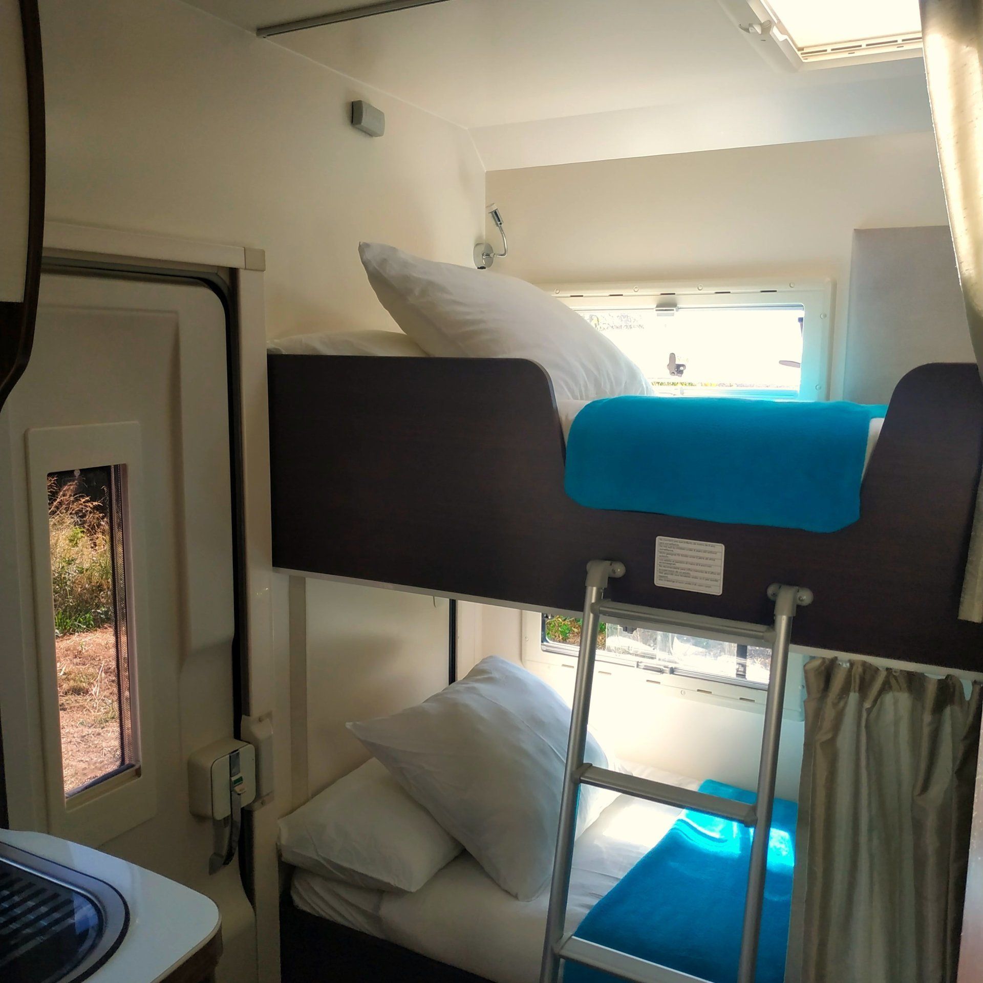 Ce camping-car 7 places, mais de petite taille, vous allez adorer dès que vous montez à bord. Bien distribué et avec tous ces détails qui le rendent si confortable, vous serez impatient d'aller n'importe où avec cette petite maison à roulettes. Le châssis de ce camping-car est une Fiat Torino. Il est équipé d’un moteur diesel 130 cv de basse consommation. Très maniable, il possède une caméra arrière pour faciliter les manœuvres et s'active directement lorsque vous passez en marche arrière ou, si vous préférez, vous pouvez l'activer de sorte qu'il soit toujours actif en tant que rétroviseur. Il dispose également de la climatisation dans la cabine, d’un lecteur CD et d’une entrée audio auxiliaire via Jack 3,5 ”. En ce qui concerne le logement, mettez en valeur son équipement complet pour ne pas avoir à transporter plus que vos effets personnels. Entièrement autonome, il dispose de panneaux solaires, d'un réservoir d'eau propre de 127 litres, d'eau chaude et du chauffage. En ce qui concerne l'intérieur et sa répartition, les postes de couchage sont divisés en deux lits superposés, un lit double dans la capucine, un lit double convertible dans le salon et un plus petit également convertible. Pour manger, 6 places dans le salon et une table de 180x75 avec chaises et bancs pour l’extérieur, où nous avons aussi un barbecue et un auvent avec barre lumineuse à LED. Pour notre divertissement, une télévision avec lecteur DVD et USB avec une clé USB de films variés, de nombreux jeux de société et même des livres à colorier et des crayons ou des magazines. En ce qui concerne la cuisine entièrement équipée de la vaisselle et des ustensiles, mettez le réfrigérateur en évidence avec un congélateur trivalent de grande capacité (150 L). Il comprend également un brûleur à gaz à trois feux et un grand plan de travail en forme de L, ainsi que certains produits complémentaires tels que le café, le thé, le cacao, le sucre, l'huile, le sel et le vinaigre. Dans les toilettes, l’écran sépare la douche de la zone de toilettes et est complété par un grand miroir, un bon éclairage, une lucarne au-dessus de la douche, une fenêtre et un espace ouvert qui offre de l’espace. Gratuit: papier toilette, gel de bain et tablettes chimiques pour le WC. Et comme rangement, le placard, où vous trouverez des serviettes de douche et des cintres pour suspendre vos vêtements, et un entrepôt où vous pourrez ranger tout le matériel supplémentaire que vous devez transporter. Il convient de noter que cette cave peut être transformée en une grande où transporter même des vélos, en annulant le lit superposé bas. Enfin, mentionnons que toutes les fenêtres et les lanterneaux du camping-car sont équipés d’obscurateurs et de moustiquaires, ainsi que de la porte d’entrée de la maison et d’un équipement supplémentaire fourni avec tous les ustensiles nécessaires au camping-car, comme le câble 220 W avec rallonge. et adaptateurs, tuyau de remplissage du réservoir d’eau, bouteille de gaz, cales de mise à niveau, trousse de premiers soins, trousse de réparation de crevaison, outils, extincteur, etc.